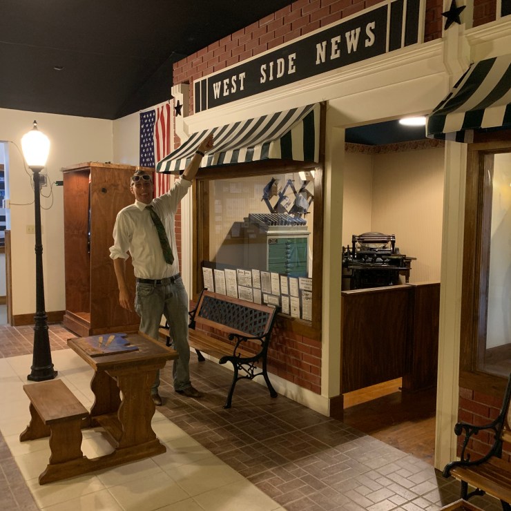 WEST SIDE NEWS they had a print shop in Dayton Ohio called this.And so I ask a gentleman to take my picture and got to speaking with him and his wife .I asked him were he was from because I he had an noticed an Accent he said he was a Boy Scout from Poland So as the conversation went on I found out more he came to do a sort of Bicycle Charity ride